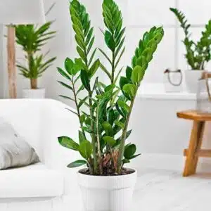 La Zamioculcas También llamada "gema de Zanzíbar", "planta ZZ", "planta Zuzu" o palma esmeraldas una planta de interior, el riego se hace moderadamente evitando encharcamiento y manteniendo el sustrato húmedo, se recomienda fertilizar quincenalmente con follaje o abonar la tierra. El mantenimiento se hace quitando hojas secas.