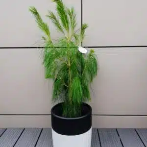 El Pino Limón es una conífera pinácea utilizada en el diseño de jardines como árboles y arbustos debido a su facilidad para manejarlos en diferentes formas y como setos. El riego se haca cada 4 o 5 días y se debe abonar cada 15 días con fertilizantes para follaje. Apto para cultivo como Bonsái. Pequeño: 60 cm altura.